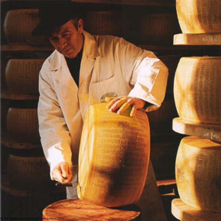 Фото 4 и 5: Сыр Parmigiano Reggiano можно делать только из пряного летнего молока. Через год он попадает в продажу под названием fresco (свежий). После двух лет выдержки его можно окрестить vecchio (старый) и использовать как приправу.