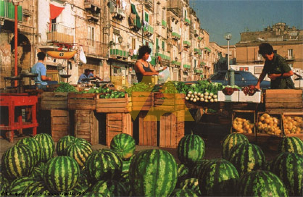 Фото 3: Говорят, что в Италии произрастают около 50 сортов овощей. Но лучше всего покупать на рынке те овощи, чей сейчас сезон. От жажды спасают арбузы.