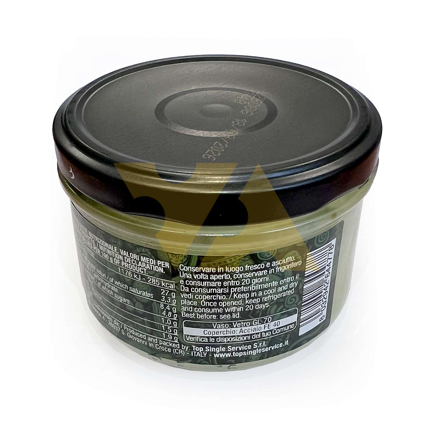 Жиры: 27 г. — в том числе насыщенные 3.3 г., углеводы: 8.4 г. — в том числе сахара 4.8 г., белки: 1.5 г., Соль: 1.9 г.
