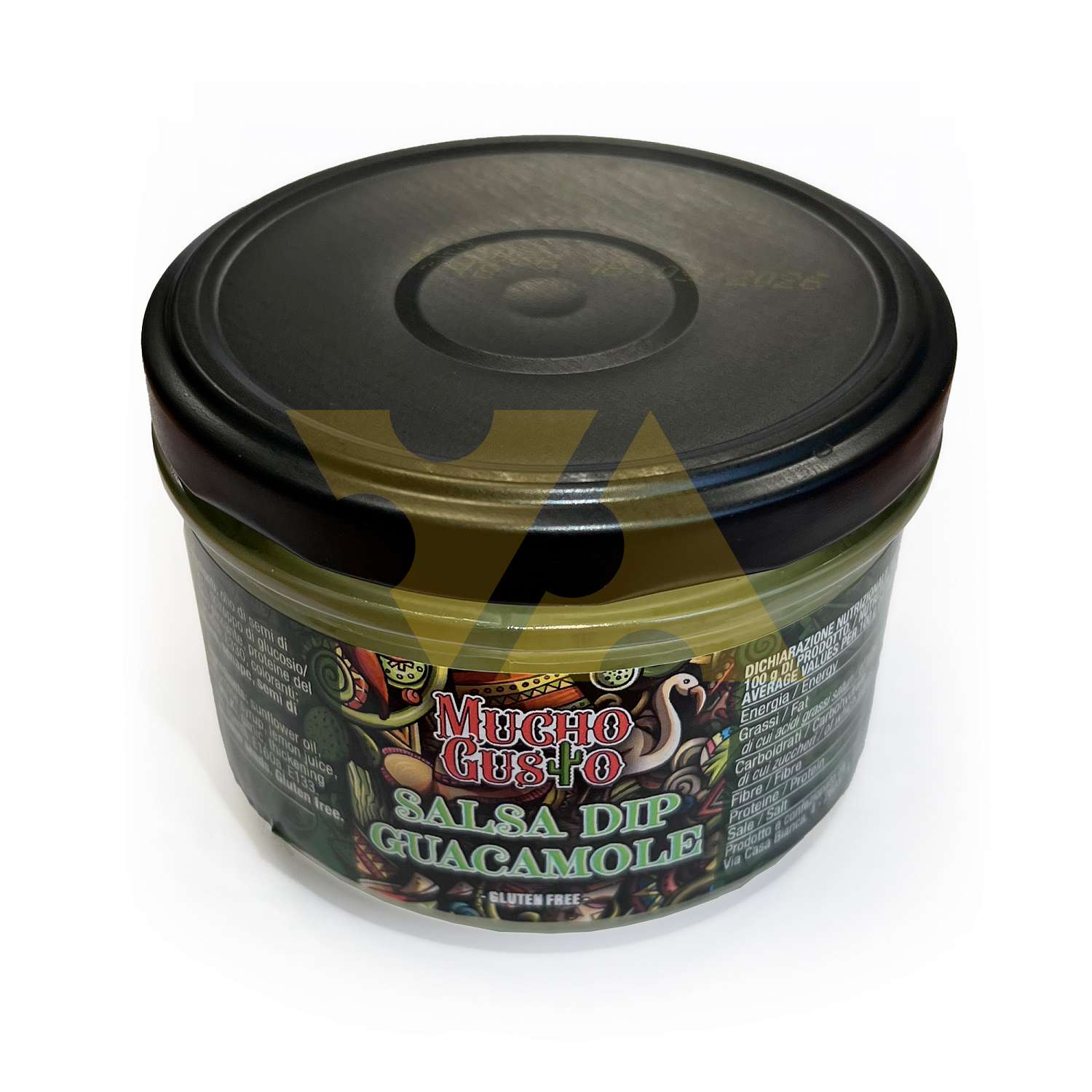 Масло подсолнечное, вода, лук, авокадо (12%), перец красный и зеленый (12%), сироп глюкозы-фруктозы, лимонный сок, крахмал кукурузный модифицированный, соль, острый перец, молочный белок, чеснок, загуститель: Е415, антиоксидант: Е300, регулятор кислотности: Е330, краситель: Е160а, Е133. Может содержать остатки рыбы, сои, кешью, орехов, фисташек, сельдерея, горчицы и кунжута. Не содержит глютен.