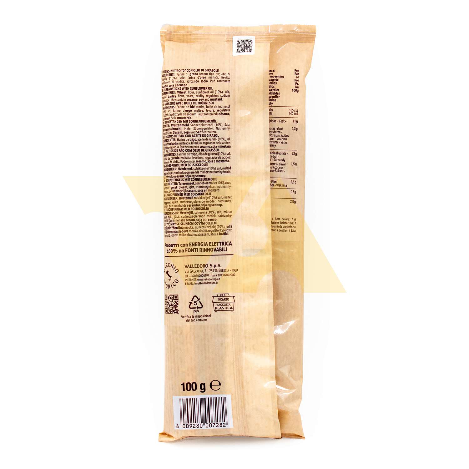 Мука из мягких сортов пшеницы типа "0", масло подсолнечное 10%, соль, мука из ржаного солода, дрожжи, регулятор кислотности: гидроксид натрия. Не содержит ГМО; содержит глютен; может содержать кунжут, сою и горчицу.