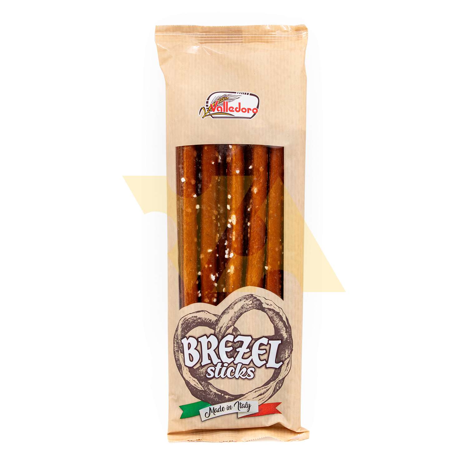 Хлебные палочки с типичным вкусом брецеля и характерным внешним видом благодаря блестящему коричневому цвету и покрытию кристаллической солью.