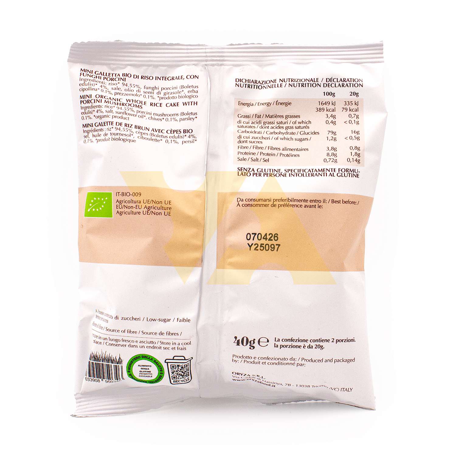 MINI GALLETTA BIO DI RISO INTEGRALE, CON FUNGHI PORCINI