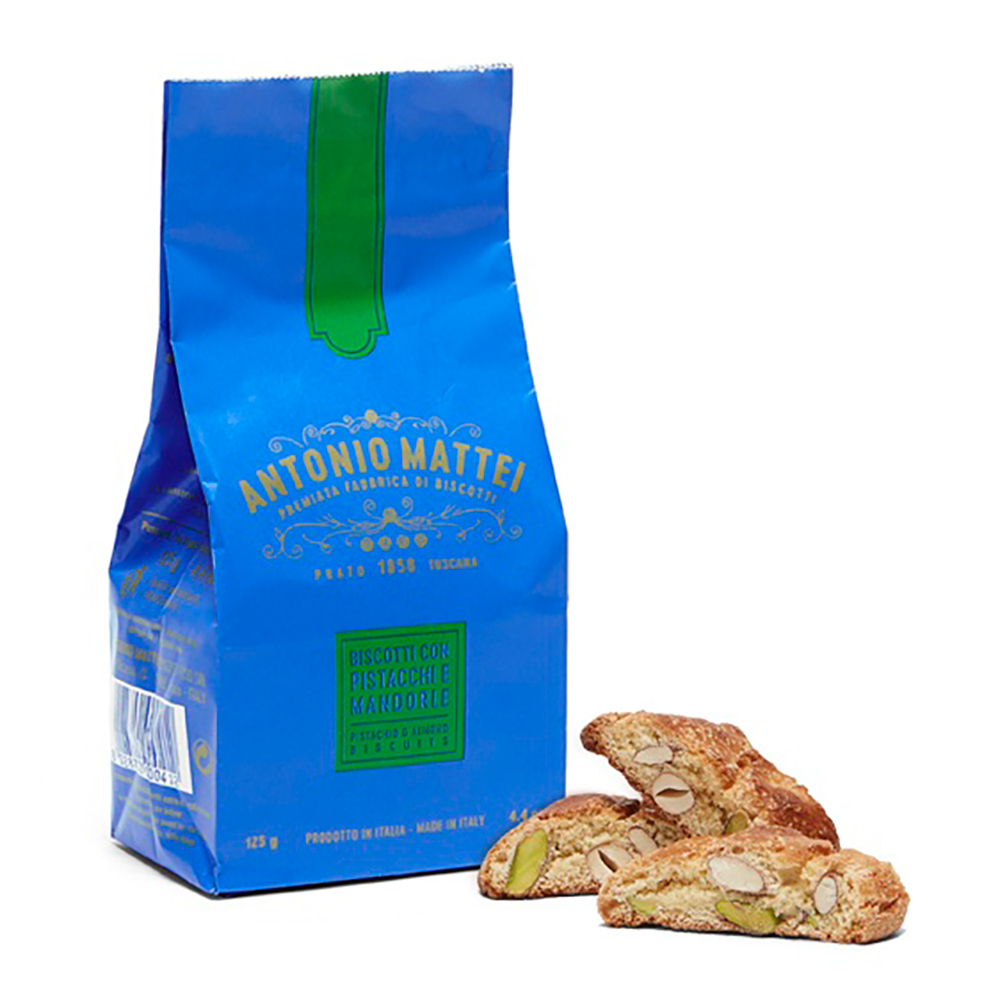 Бискотти ди Прато, также известные как кантуччи или кантуччини, являются частью тосканской кондитерской традиции и считаются идеальным завершением трапезы в сочетании с винсанто. Бискотти с фисташками и миндалем — это свежий вкусовой вариант традиционных бискотти, приготовленный из того же самого теста.
