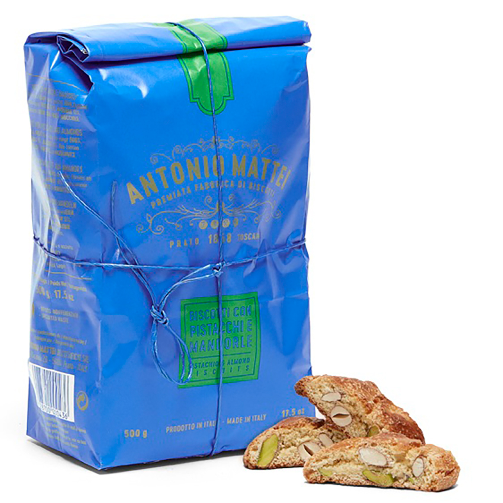 Бискотти ди Прато, также известные как кантуччи или кантуччини, являются частью тосканской кондитерской традиции и считаются идеальным завершением трапезы в сочетании с винсанто. Бискотти с фисташками и миндалем — это свежий вкусовой вариант традиционных бискотти, приготовленный из того же самого теста.