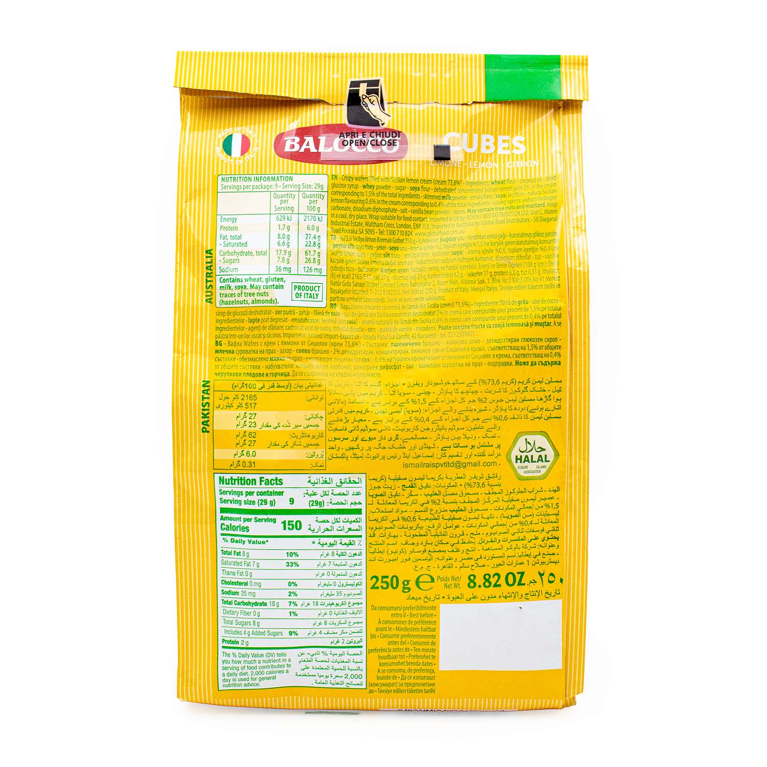 Хрустящие вафли с кремом сицилийского лимона (крем 73,6%).