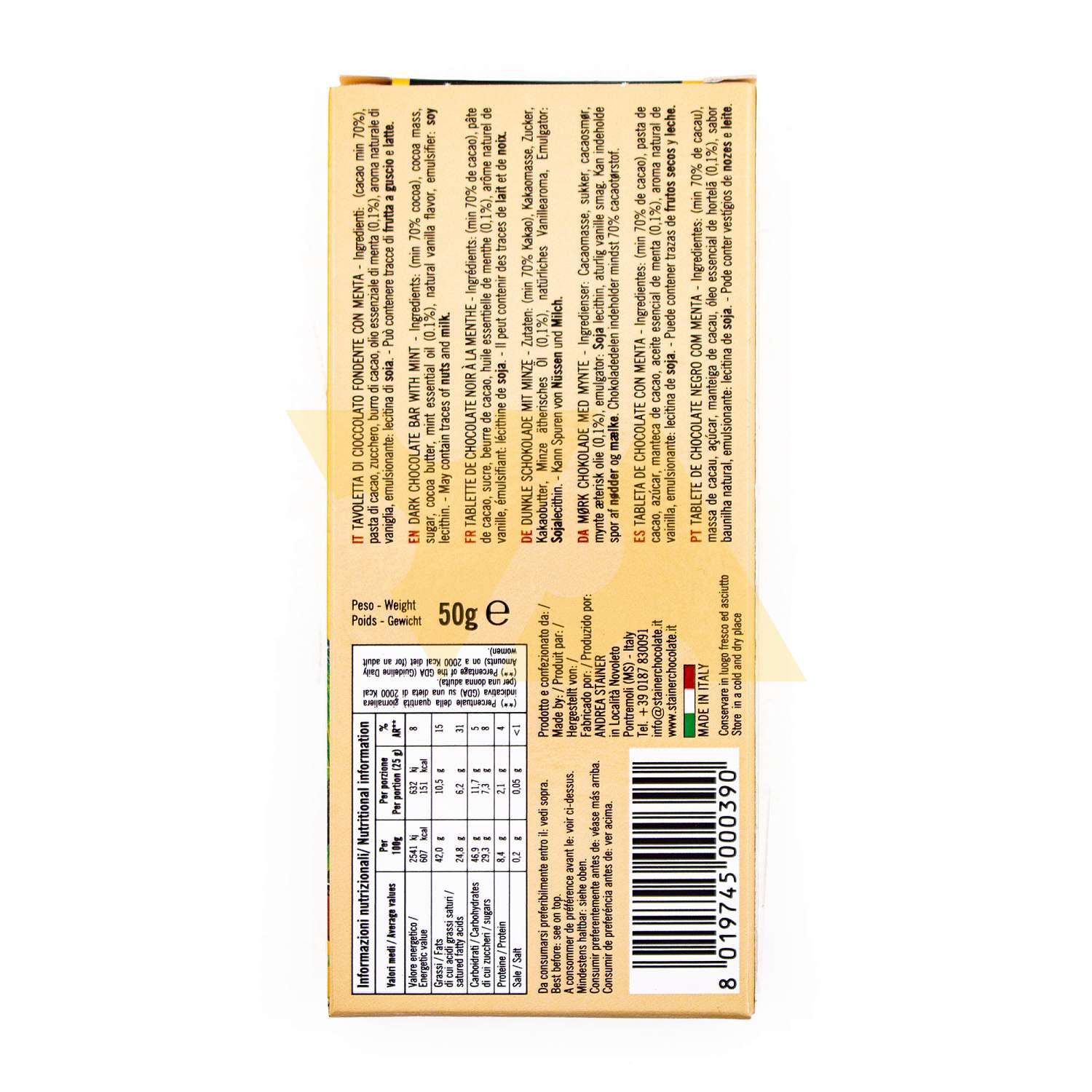 паста какао, сахар, масло какао, масляный экстракт мяты 0,1%, ароматизатор натуральная ваниль. Может содержать остатки орехов и молока.