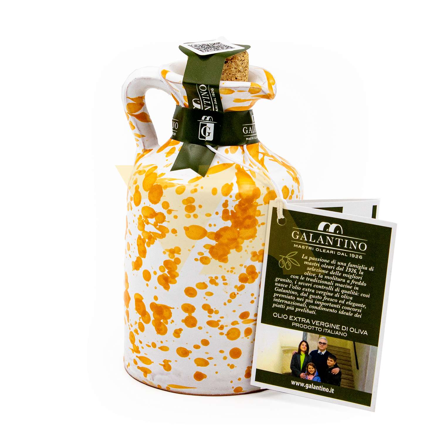 Масло оливковое первого холодного отжима FRUTTATO MEDIO, GALANTINO, 0,1 л (глиняный кувшин FANTASIA GIALLO желтый)  Frantoio F.lli Galantino S.N.C. Италия