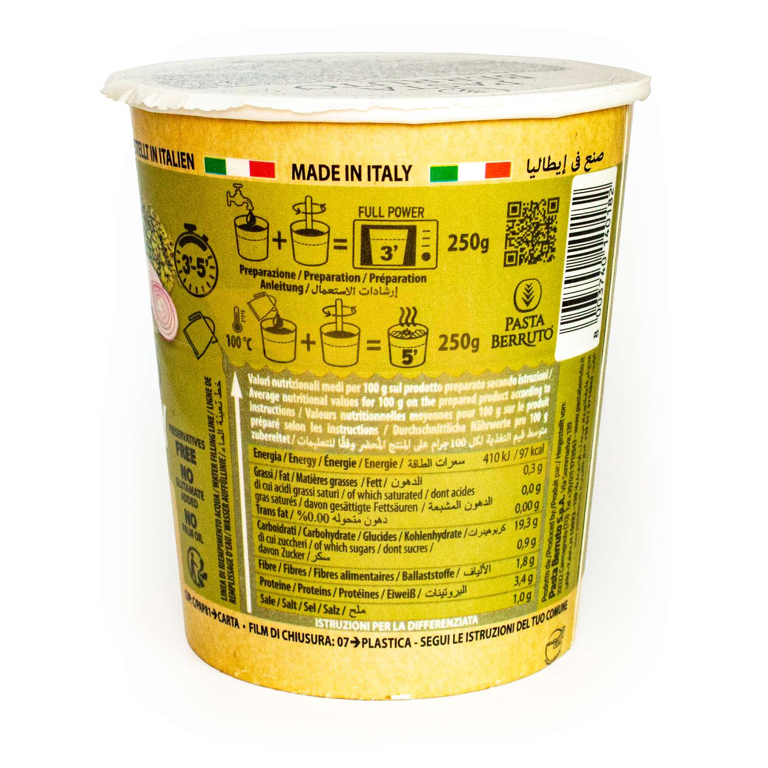 Способ приготовления: открыть верхнюю защитную пленку до половины и добавить кипятка (100°С/212°F) до отметки внутри упаковки и хорошо перемешать. Оставить на 5 минут (аль денте), перед употреблением снова хорошо перемешать.