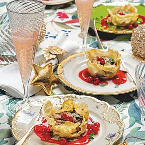 Подача на Рождество: мусс из печёнки в гнёздах из хлеба карасау