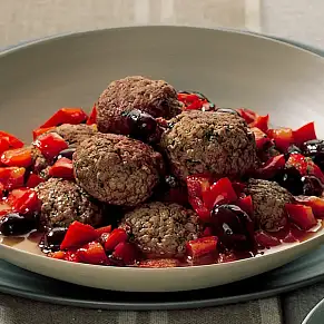 Фрикадельки фаршированные сыром Грюйер с перцем и оливками
