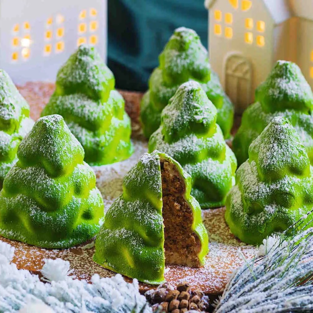 Разложите тесто по силиконовым формочкам в виде ёлочек (можно найти онлайн) или в маленькие кексовые формы. Заполняйте на ¾.
