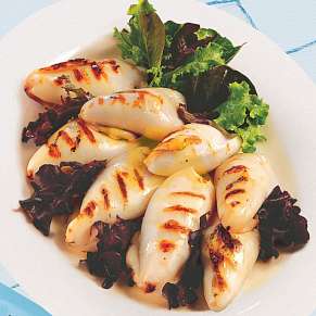 Кальмары на гриле с вареным прошутто и сыром Азиаго