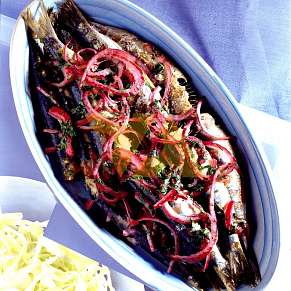 Замочите изюм в теплой воде. Очистите сардинки, отделив головы и кости. Вымойте, разложите на холщовом полотенце и дайте обсохнуть.
