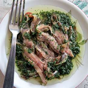 Замочите изюм в теплой воде. Очистите сардинки, отделив головы и кости. Вымойте, разложите на холщовом полотенце и дайте обсохнуть.