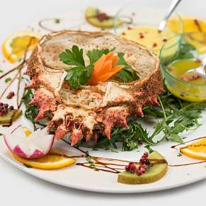 В кастрюле на сливочном масле припустите нарезанный дольками репчатый лук, морковь, залейте содержимое вином и литром воды, добавьте пучок петрушки, лавровый лист, тимьян, соль и перец. Дайте воде закипеть, после чего опустите в нее лангуста. Отварите его в течение 20 минут, а затем оставьте его остывать в бульоне.