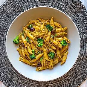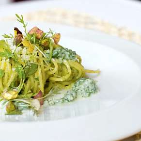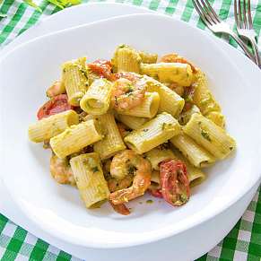 Паста из креветок с чесночным маслом и гороховым сливочным соусом