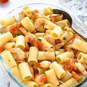 Ригатони с креветками