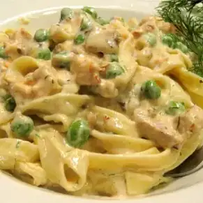 Паппарделле с соусом из зеленого горошка с лососем