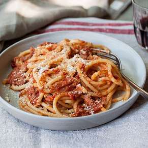 Букатини с соусом из мяса ягненка является традиционным блюдом центральной Италии.