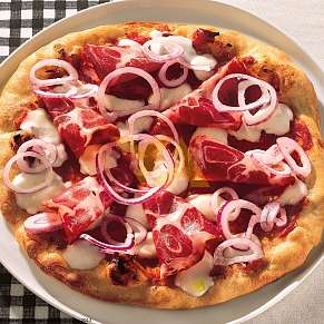 Пицца с сыром моццарелла из буйволиного молока и свиной коппой