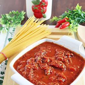 Соус отлично подойдет для использования в качестве закуски, так и к блюдам из пасты и риса.