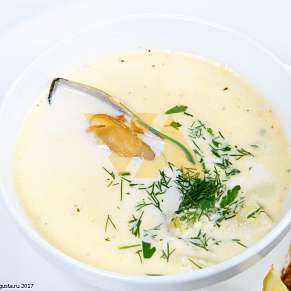 Сливочный суп из артишоков с шампиньонами и кнелями из куры