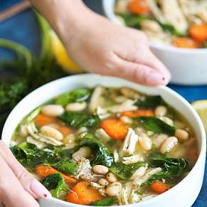 Куриный суп со шпинатом, белой фасолью и пастой Орекьетте
