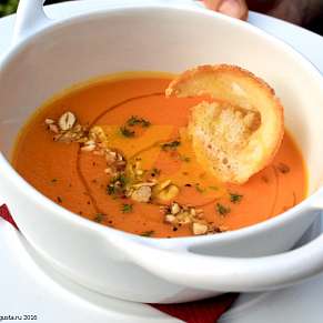 Классический тосканский суп с белой фасолью, капустой, томатами, сухариками, соффритто (блюдо из поджаренных мелко-нарезанных овощей) чеснока и овощей. Идеальное холодное блюдо.