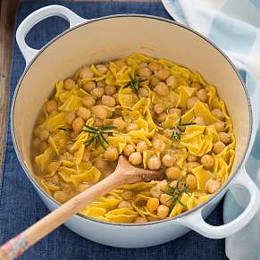 Деревенская итальянская кухня в своих лучших традициях. Пюре из нута и паста сделают суп сытным и достаточно густым.