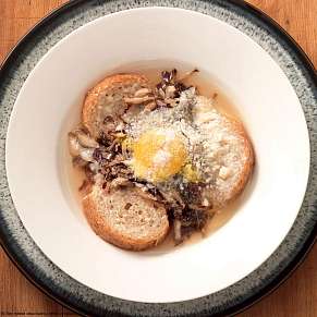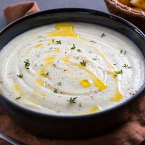 Суп-пюре из белой спаржи с шариками из Пармиджано Реджано