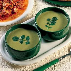 Хотя этот крем-суп достаточно прост на вкус, так как он состоит из спаржи, но хрустящие сырные шарики из Пармезана делают его пикантным.