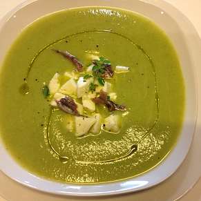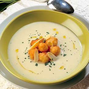 Суп-пюре из белой спаржи с шариками из Пармиджано Реджано