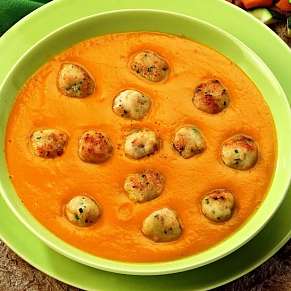 Суп-пюре морковный с рыбными фрикадельками из морского черта