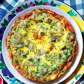 Фриттата – это блюдо из яиц, по виду напоминающее пирог, которое можно подавать в любое время дня.