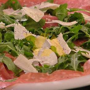 Карпаччо из салями Гольфетта с рукколой и пекорино