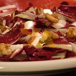 Карпаччо из брезаолы с цикорием и грецкими орехами